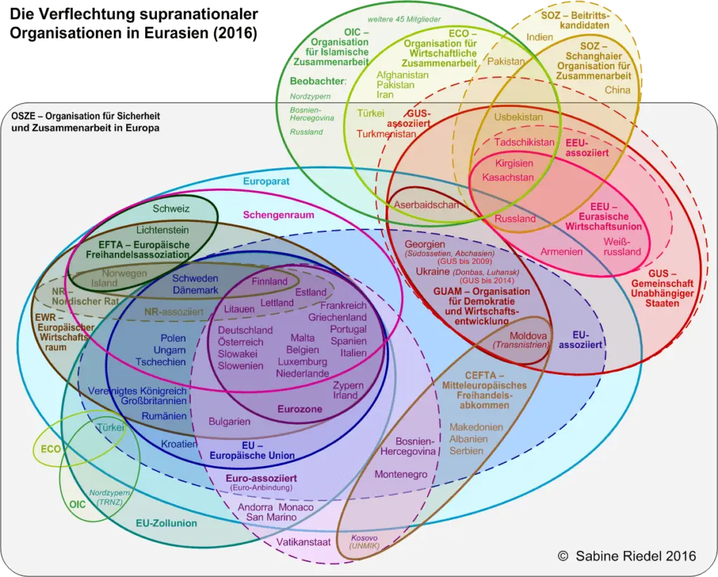 Ein solcher Ansatz wäre, die EU-assoziierte Mitgliedschaft aufzuwerten, indem Brüssel auf ab- und ausgrenzende Elemente seiner Assoziierungsverträge verzichtet. Den Staaten des EU-Nachbarschaftsraums sollte also die Möglichkeit gegeben werden, sich gleichzeitig auch anderen regionalen Kooperationsinitiativen anzuschließen, z. B. der Eurasischen Wirtschaftsunion (EAWU) oder auch der Shanghaier Organisation für Zusammenarbeit (SOZ). Bei der Erarbeitung eines solchen Konzepts zur Entwicklung überlappender Integrationsräume kann die EU sogar aus ihren eigenen Erfahrungen schöpfen: Denn sie nahm bisher keinerlei Anstoß an der Mitarbeit ihrer Mitglieder Dänemark, Schweden und Finnland im Nordischen Rat, der auch eine spezielle Wirtschaftskooperation ermöglicht (vgl. Art. 18-25). Das Konzept überlappender Integrationsräume in Europa würde nicht nur in Brüssel für Entlastung sorgen, sondern auch die Selbstverantwortung und Eigeninitiative der EU-assoziierten Mitglieder stärken.