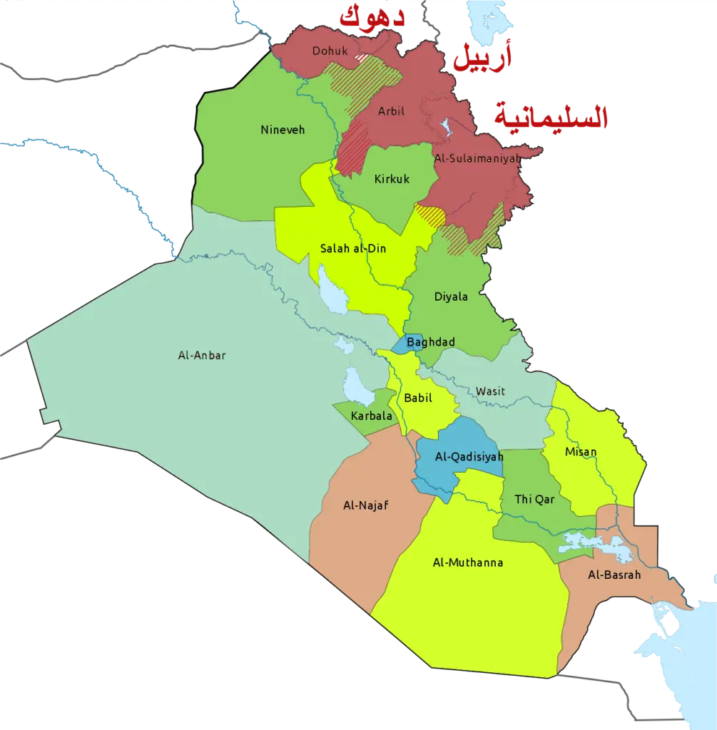 Rafy, Irakische Gouvernements, in: Wikipedia, 25.1.2011 und Location of Kurdistan in Iraq, in: Wikivoyage.org, 25.10.2017