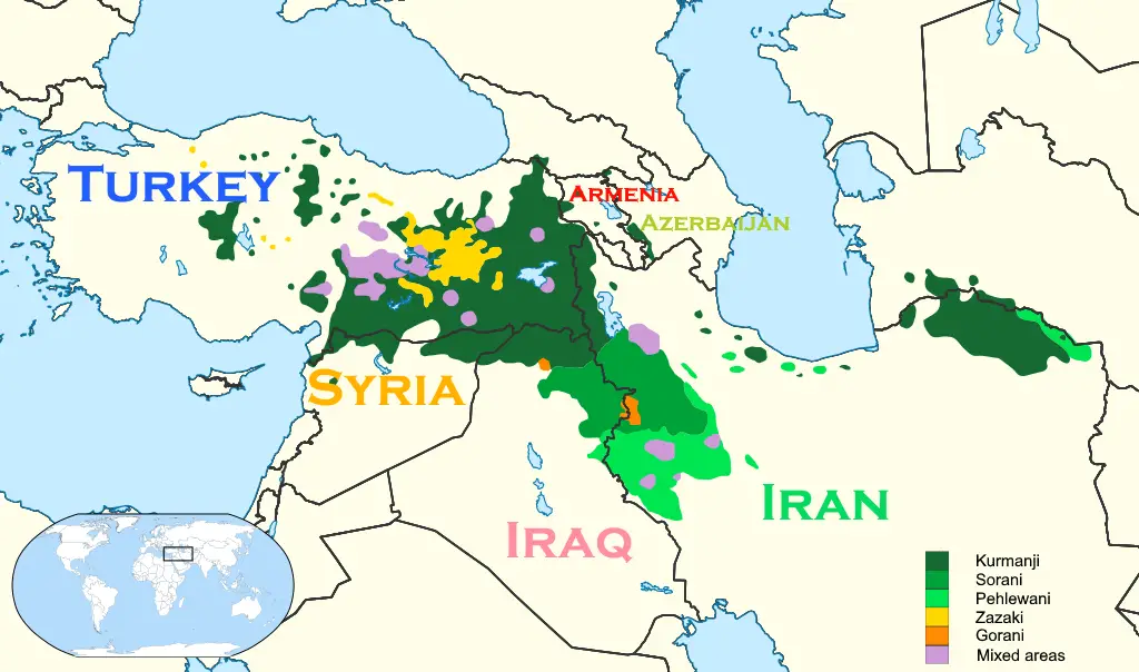 Estimated distribution area of Kurdish language(s)